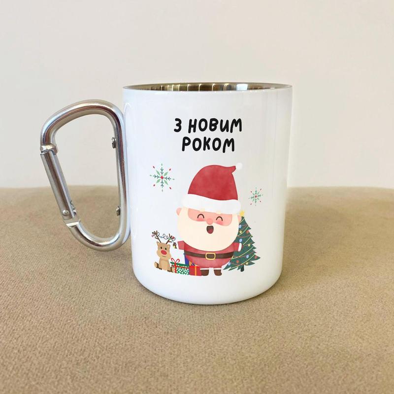 Кружка металева з карабіном "з новим роком" 300 мл біла|швидка доставка|