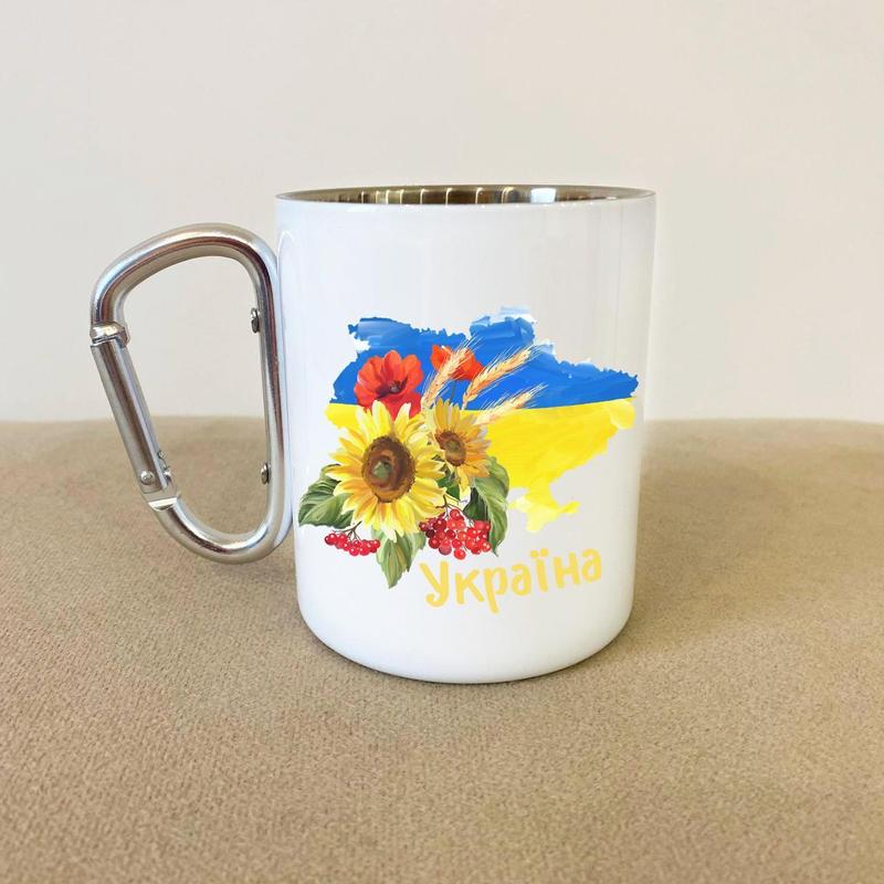 Кружка металева з карабіном "україна" 300 мл біла|швидка доставка|