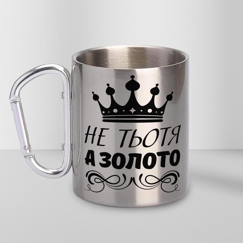 Кружка металева з карабіном "не тьотя а золото" 300 мл срібляста|швидка доставка|