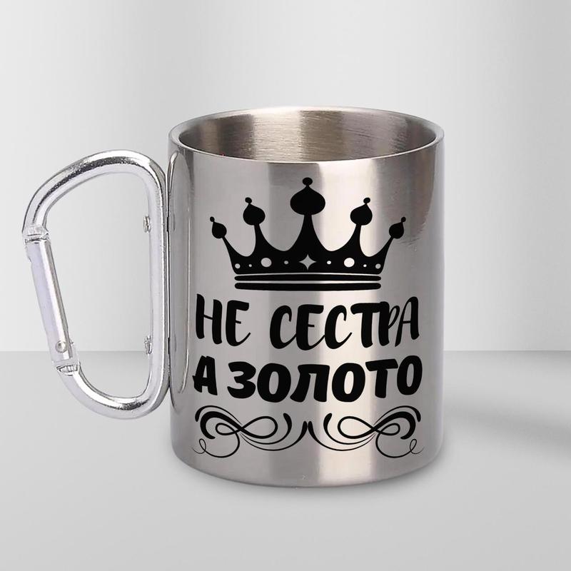 Кружка металева з карабіном "не сестра а золото" 300 мл срібляста|швидка доставка|