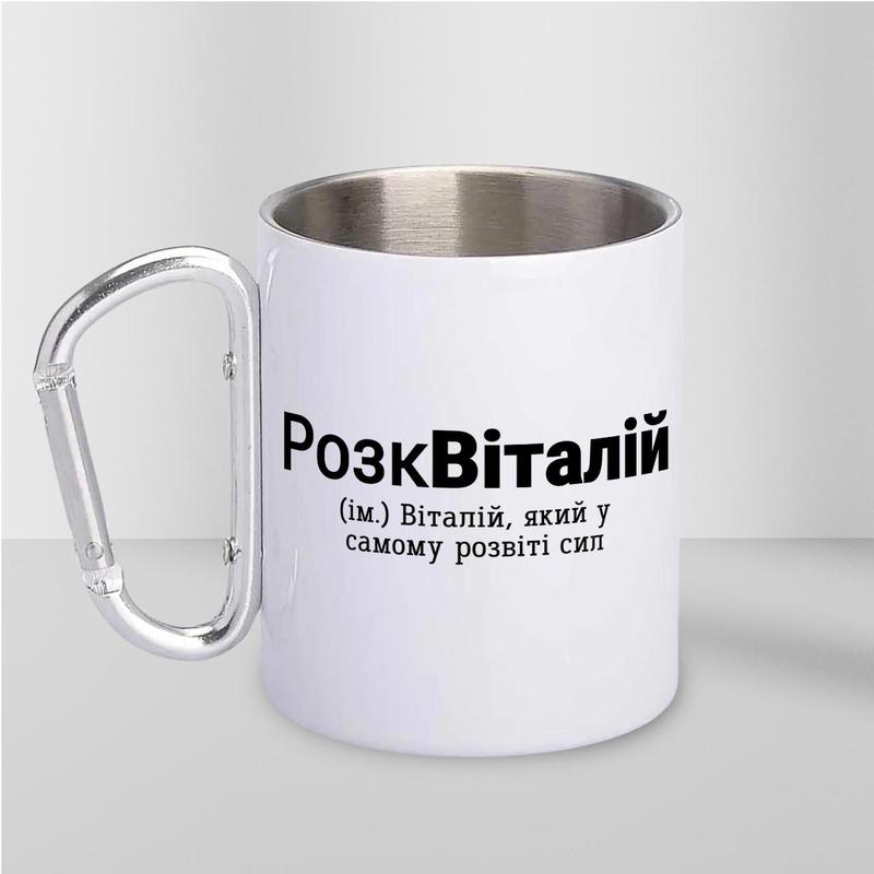 Кружка металева з карабіном "розквіталій" 300 мл біла|швидка доставка|