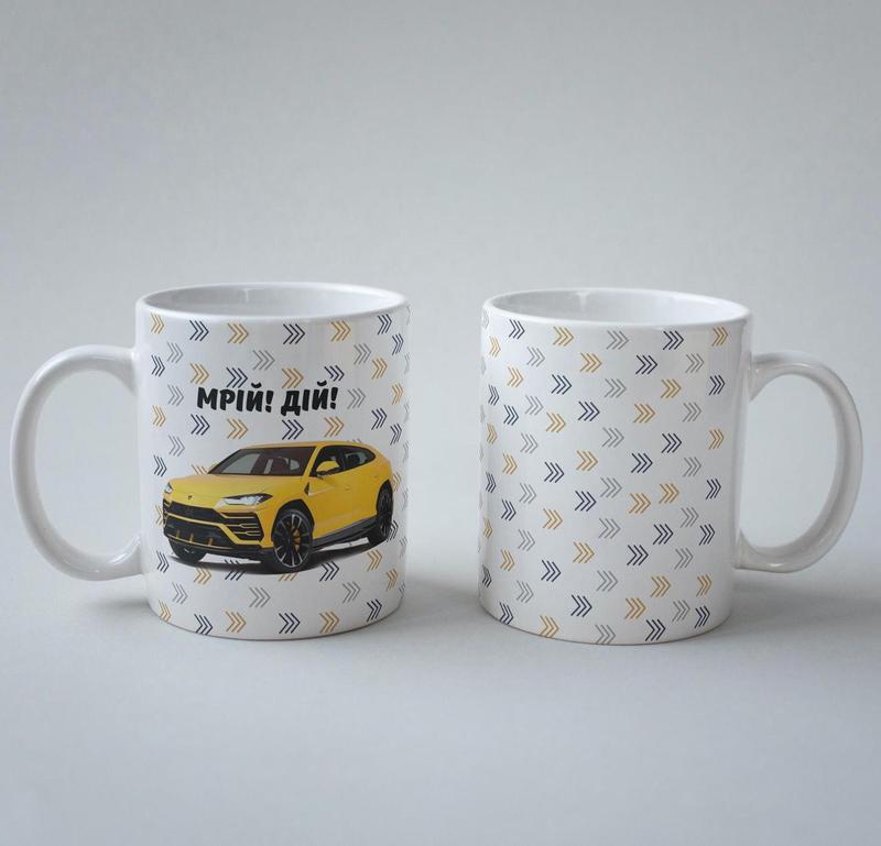 Кружка керамічна з принтом "мрій! дій! ламборгіні" 330 мл біла|швидка доставка|