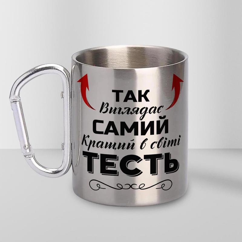 Кружка металева з карабіном "так виглядає самий кращий тесть" 300 мл срібляста|швидка до...