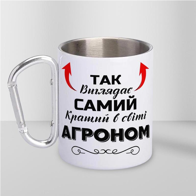Кружка металева з карабіном "так виглядає самий кращий агроном" 300 мл біла|швидка доста...