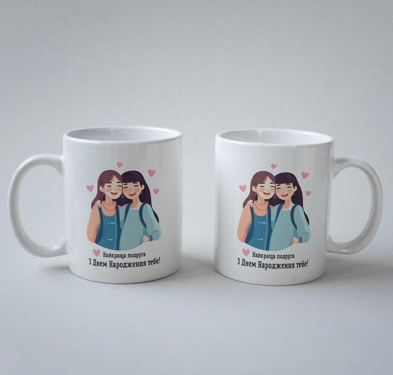 Кружка з принтом "найкраща подруга з днем народження" 330 мл біла|швидка доставка|