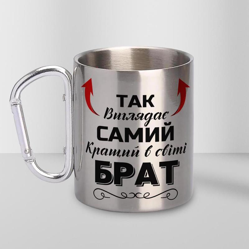 Кружка металева з карабіном "так виглядає самий кращий брат" 300 мл срібляста|швидка дос...