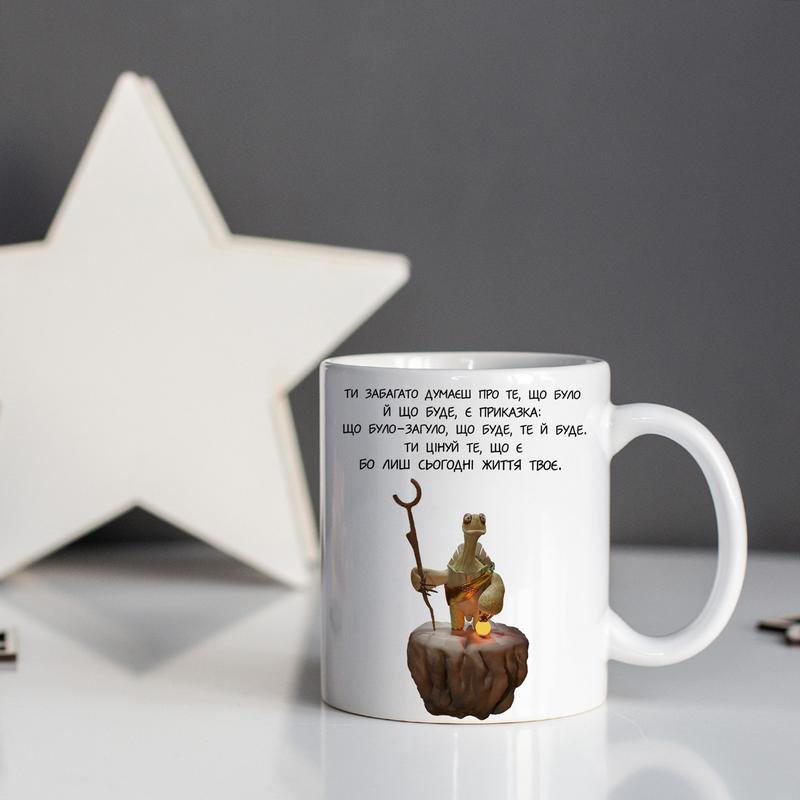 Чашка белая керамическая с принтом "ты слишком много думаешь"
