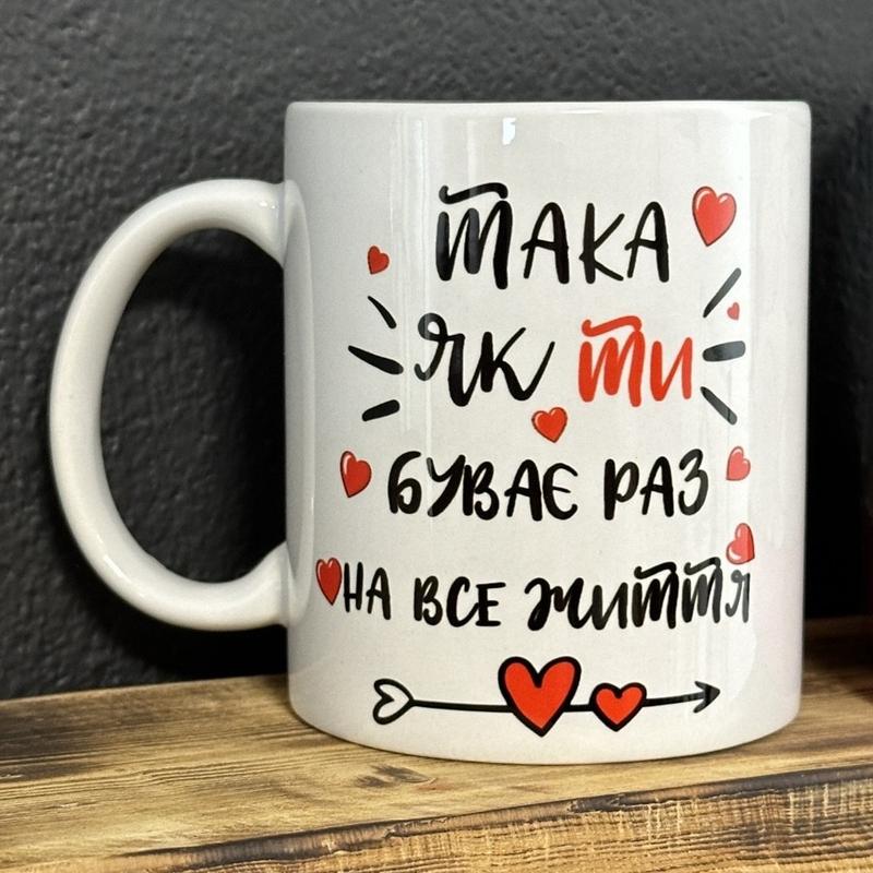 Чашка для любимой - "Такая как ты бывает раз на всю жизнь" Эта чашка с романтическими принтами создана для тех, кто ценит моменты вместе. Яркий принт, нанесенный методом сублимации, не только привносит эмоции, но и обеспечивает стойкость изображения, которое не теряет яркости даже после многочисленных моментов радости. Цветная ручка и внутренняя часть чашки доступны в различных вариантах, что позволяет подобрать идеальное сочетание для каждой пары. Объем чашки 330 мл -- идеален для кофе или чая, чтобы вместе наслаждаться любимыми напитками. Этот подарок станет замечательным дополнением к праздничной атмосфере на День святого Валентина, годовщину или просто как знак внимания. Не забудьте заказать подарочную упаковку, чтобы ваш подарок выглядел еще более торжественно! Преимущества чашки: - Яркий и долговечный принт. - Материал: прочная керамика. - Объем: 330 мл, идеален для повседневного использования. - Не рекомендуется мыть в посудомоечной машине. Заказывайте романтическую чашку прямо сейчас! Ваш подарок станет символом любви и заботы. 📞 Напишите нам в *****, ********, **** чат или ********: +38**********.