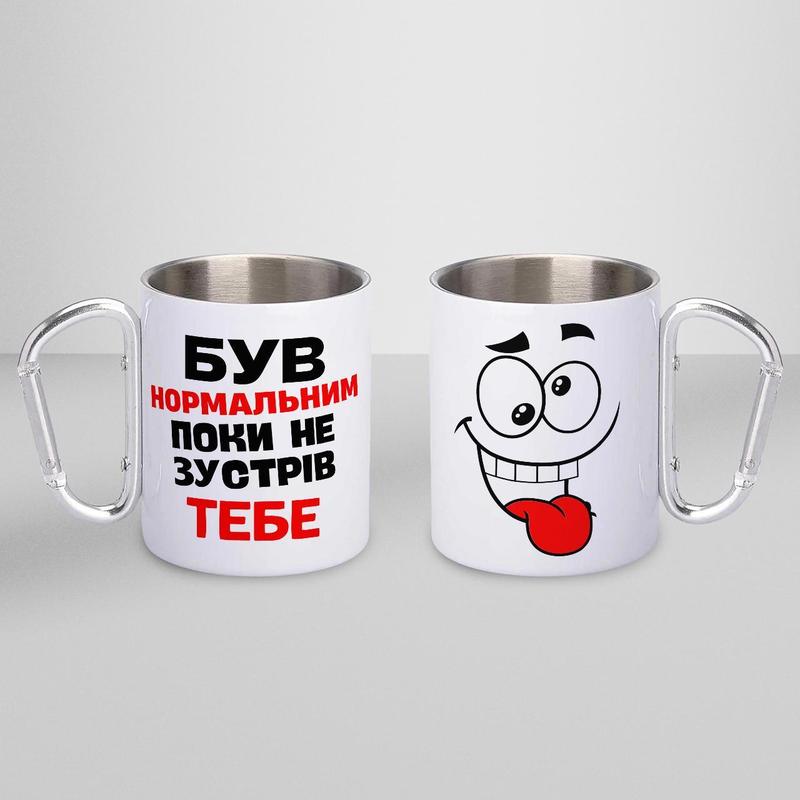 Кружка металева з карабіном "був нормальним поки не зустрів тебе" 300 мл біла|ціна-якість|