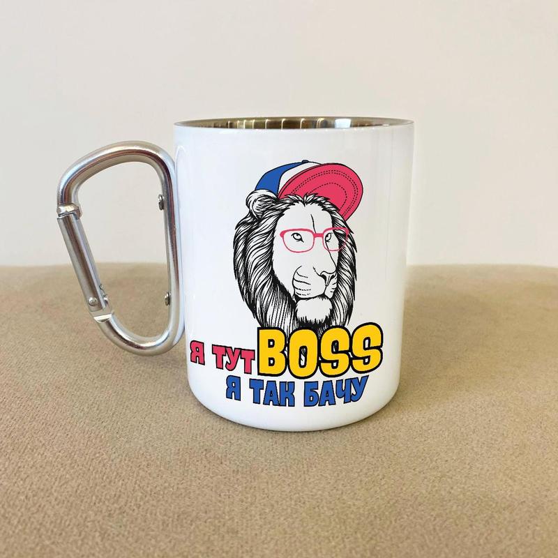Кружка металева з карабіном "я тут boss" 300 мл біла|ціна-якість|
