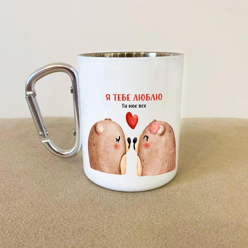 Кружка металева з карабіном "я тебе люблю" 300 мл біла|ціна-якість|