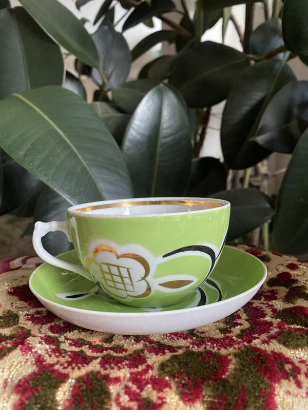 Чайная пара времен СССР. Фарфоровый завод Дулево. (60-е годы прошлого строчки)-см. Клеймо. Объем чашки-150 мл.