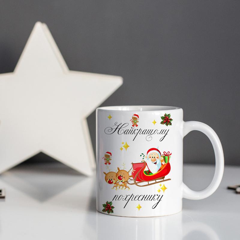 Чашка белая керамическая с принтом "лучшему крестнику"