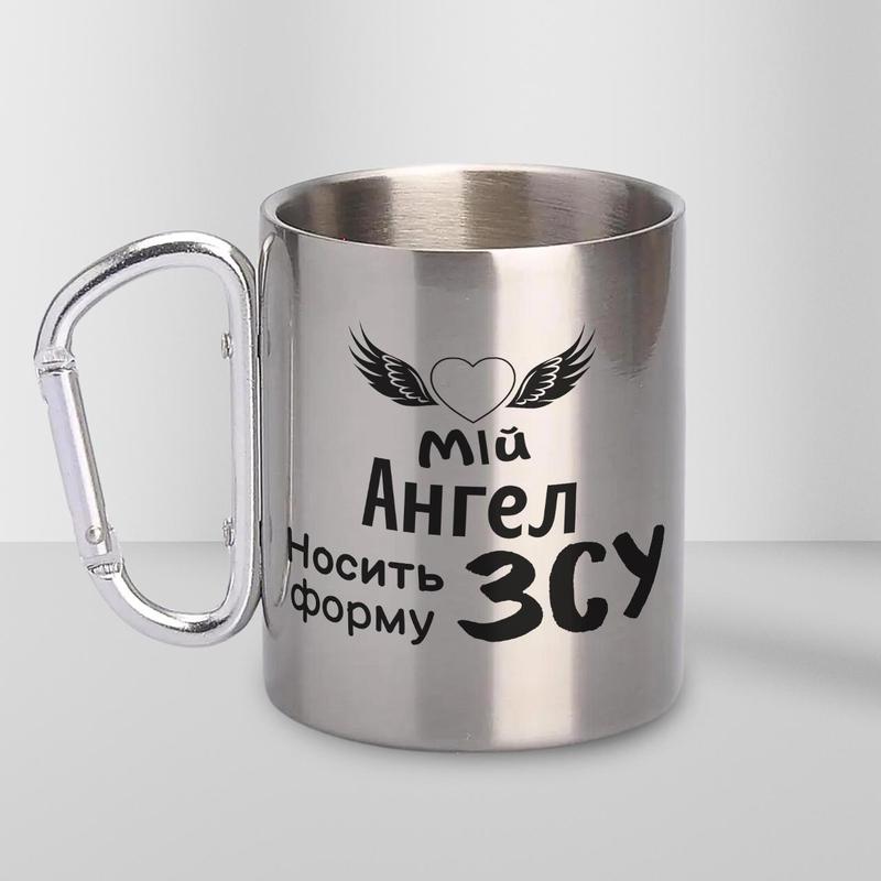 Кружка металева з карабіном "мій ангел носить форму зсу" 300 мл срібляста|знижка|