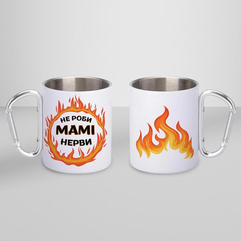 Кружка металева з карабіном "не роби мамі нерви" 300 мл біла|знижка|