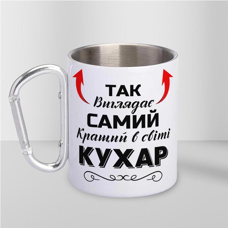 Кружка металева з карабіном "так виглядає самий кращий кухар" 300 мл біла|знижка|