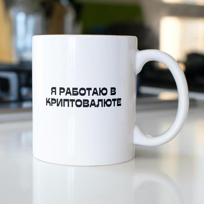 Кружка з принтом "я работаю в криптовалюте" 330 мл біла|знижка|