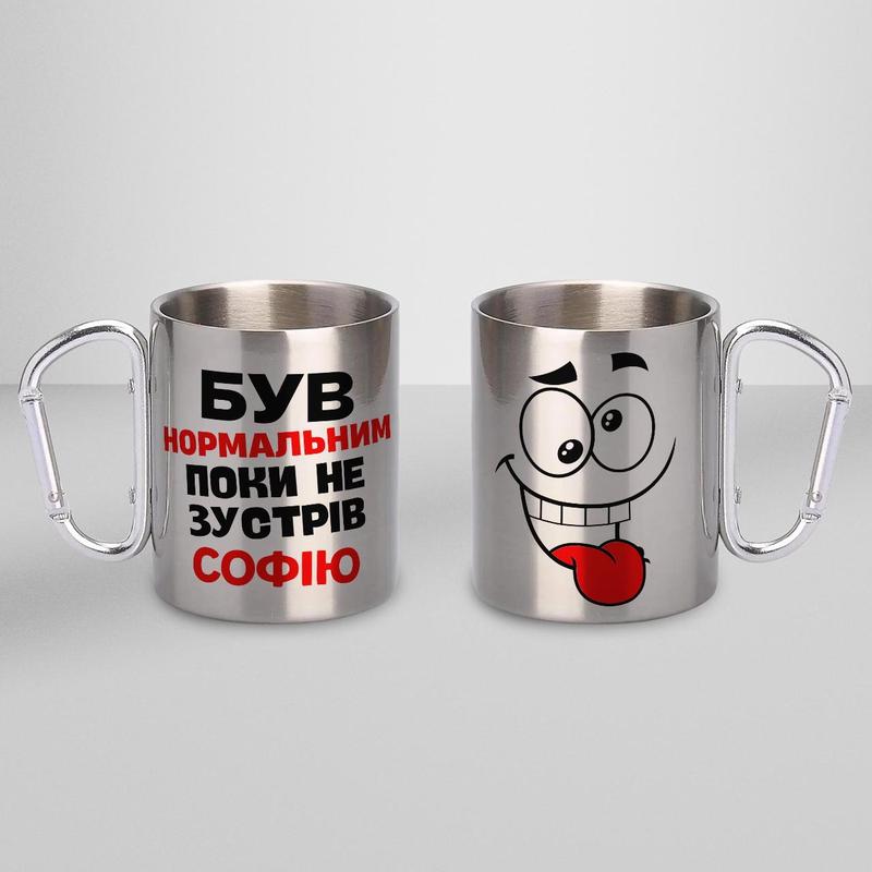 Кружка металева з карабіном "був нормальним поки не зустрів софію" 300 мл срібляста|знижка...
