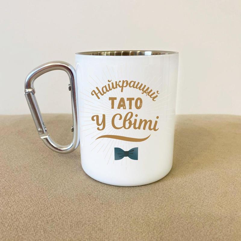 Кружка металева з карабіном "найкращий тато у світі" 300 мл біла|вигідна ціна|