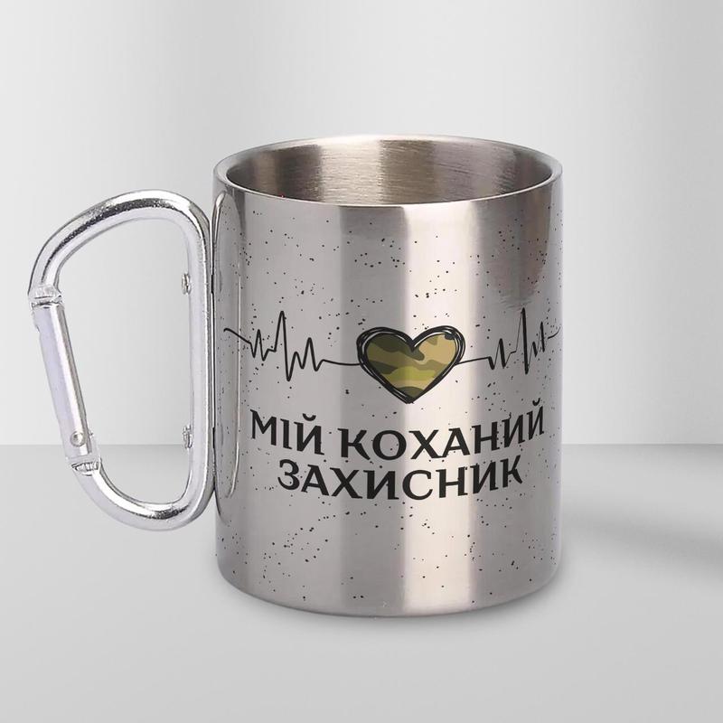 Кружка металева з карабіном "мій коханий захисник" 300 мл срібляста|вигідна ціна|