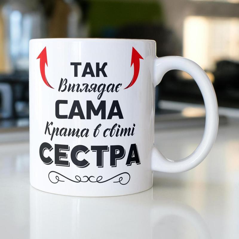 Кружка керамічна з принтом "так виглядає сама краща в світі сестра" 330 мл біла|вигідна ці...
