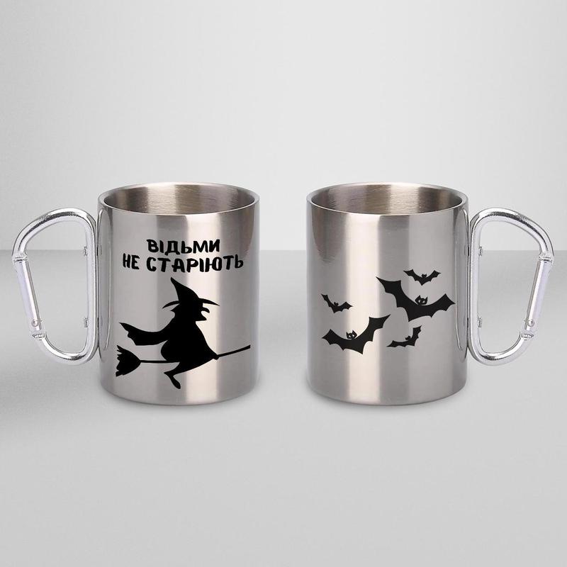 Кружка металева з карабіном "відьми не старіють" 300 мл срібляста|вигідна ціна|