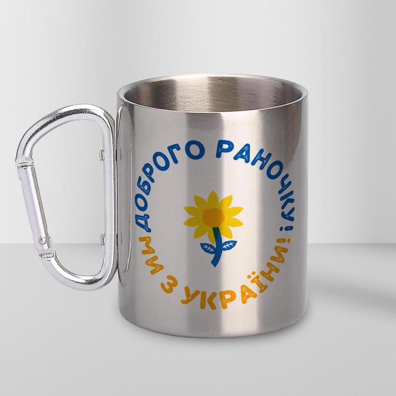 Кружка металева з карабіном "доброго раночку ми з україни" 300 мл срібляста|вигідна ціна|