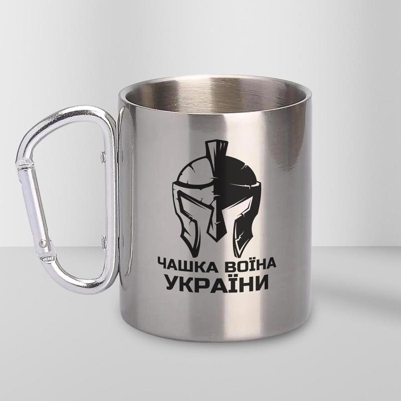 Кружка металева з карабіном "чашка воїна україни" 300 мл срібляста|вигідна ціна|