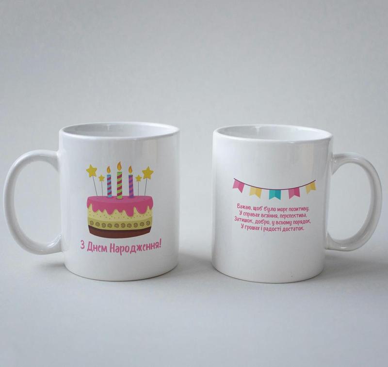 Кружка з принтом "з днем народження" 330 мл біла|вигідна ціна|