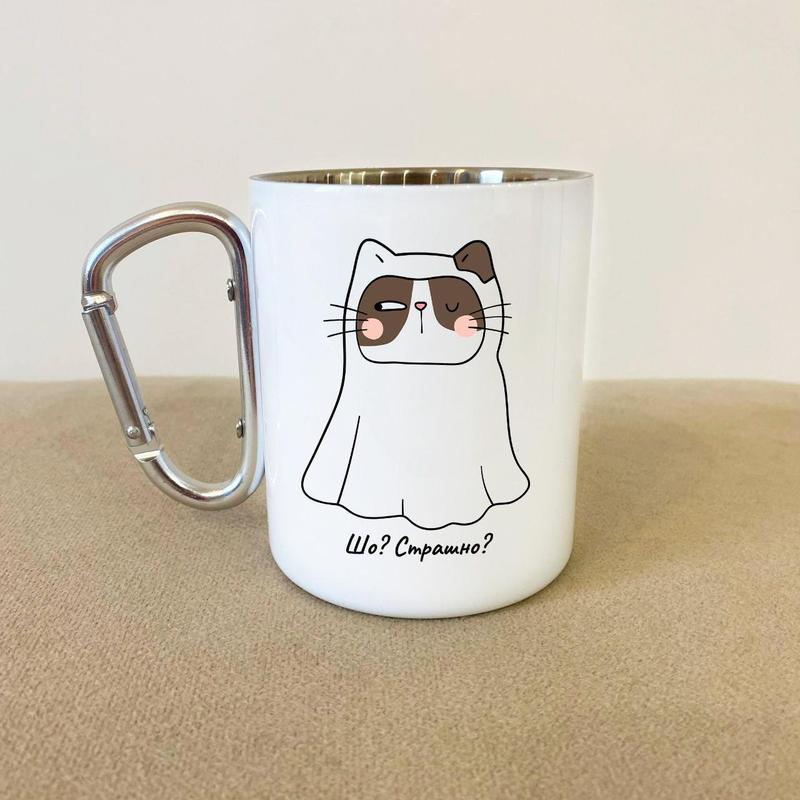 Кружка металева з карабіном "шо? страшно?" 300 мл біла|вигідна ціна|