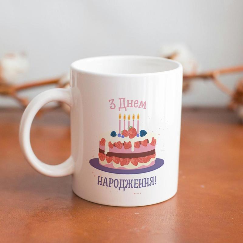 Кружка з принтом "з днем народження" 330 мл біла|вигідна ціна|