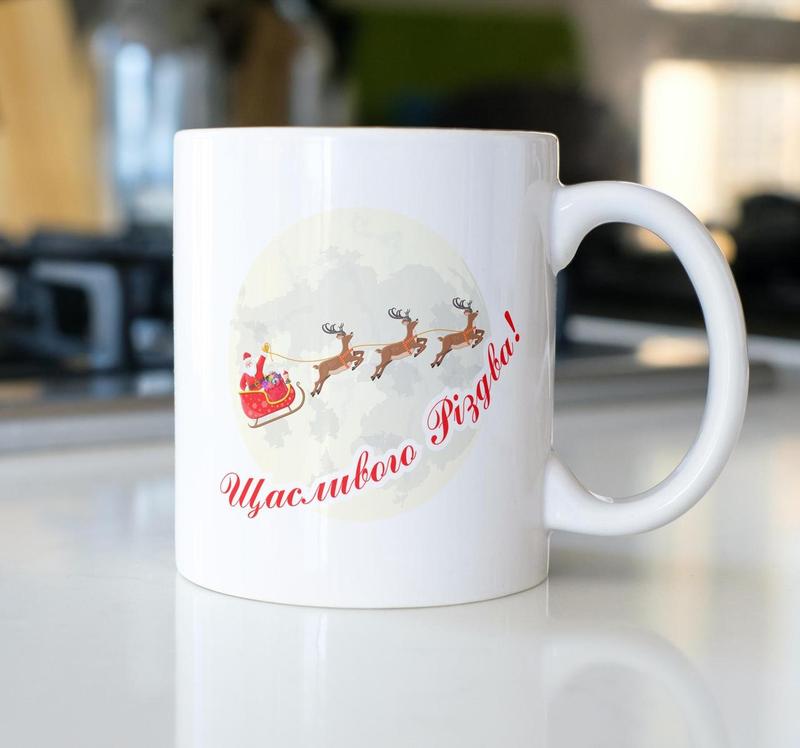 Кружка з принтом "щасливого різдва" 330 мл біла|вигідна ціна|