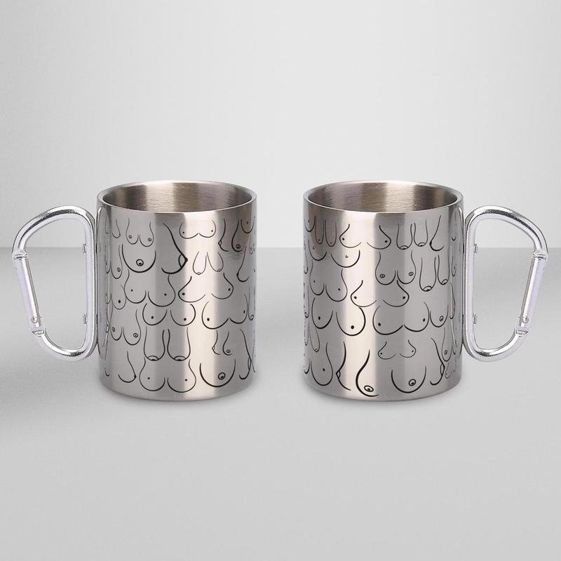 Кружка металева з карабіном "цицьки" 300 мл срібляста|вигідна ціна|