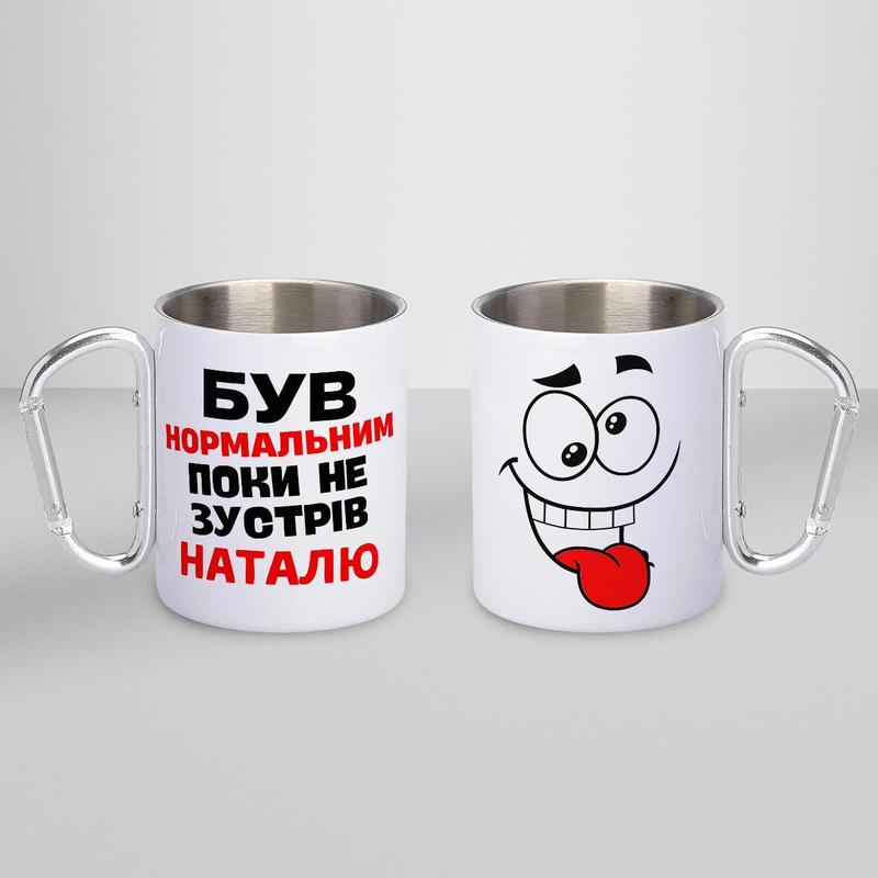 Кружка металева з карабіном "був нормальним поки не зустрів наталю" 300 мл біла|вигідна ці...