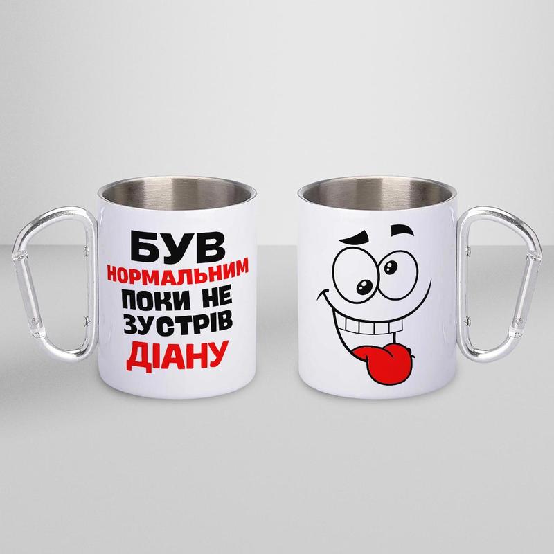 Кружка металева з карабіном "був нормальним поки не зустрів діану" 300 мл біла|вигідна цін...