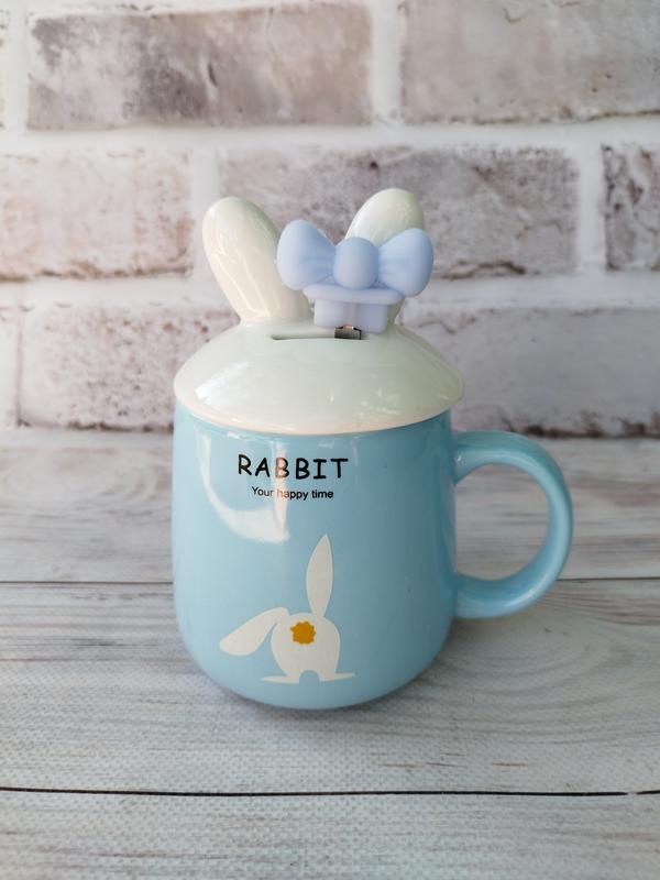 Чашка snt 20622-b зайчик керамика с крышкой и ложкой 360 мл голубой