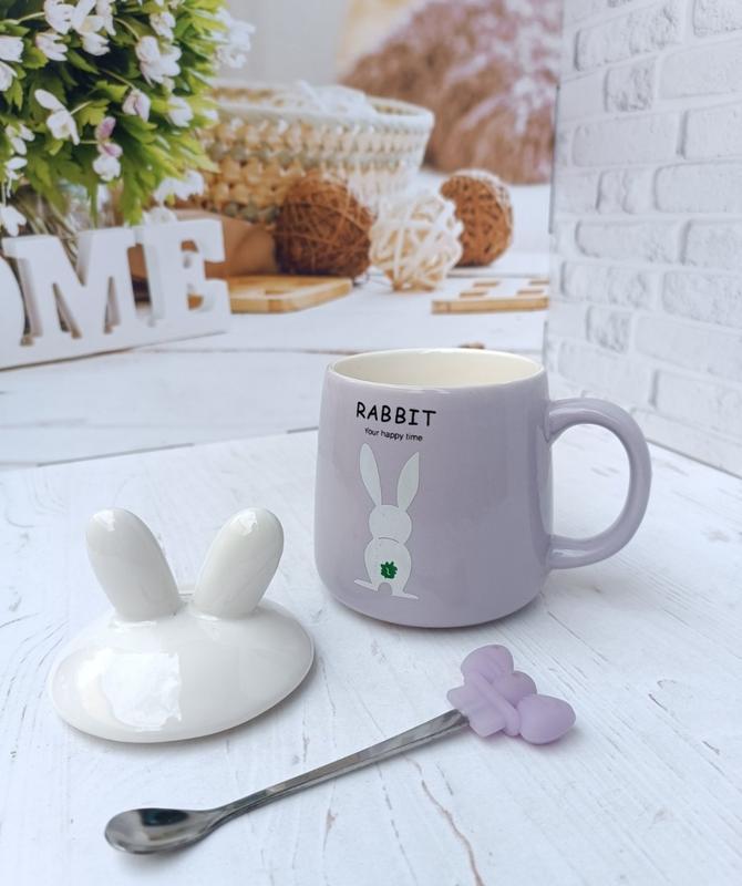 Чашка snt 20622-p зайчик керамика с крышкой и ложкой 360 мл фиолетовый