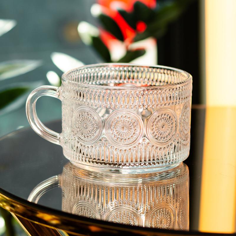 Стеклянный набор чашек 400 мл для напитков с арабесками. ku-22