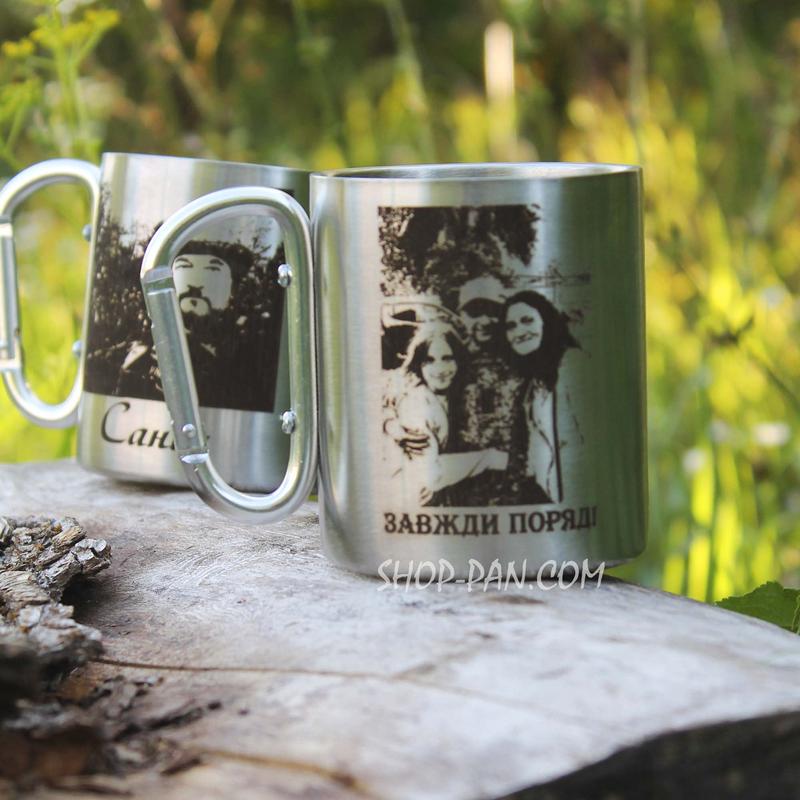 Металлическая чашка 250 мл с карабином и гравировкой - завжди поряд