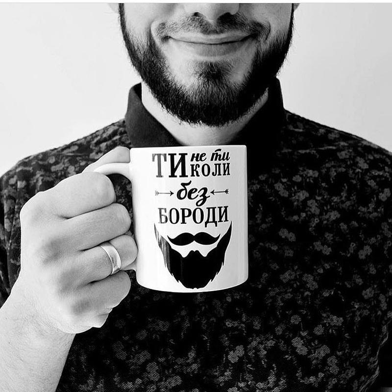 Чашка Ты не ты когда без бороды Стильная борода уже в ТОП лучше стиля года, набрала особую популярность и обороты. Подарив ее близкой человеку - отцу, другу, брату, мужчине, любимому, коллеге Вы 100% увидите улыбку на лице. Характеристики: Кружка: белая глянцевая Размер запечатанки: 19x9,5 см Печать: полноцветная, технология гравертон.