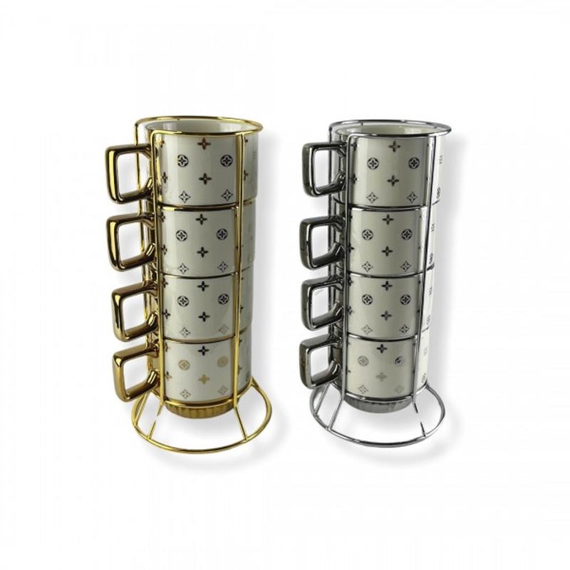 Набор чашок у металевій підставці 4шт золото, срібло 7997