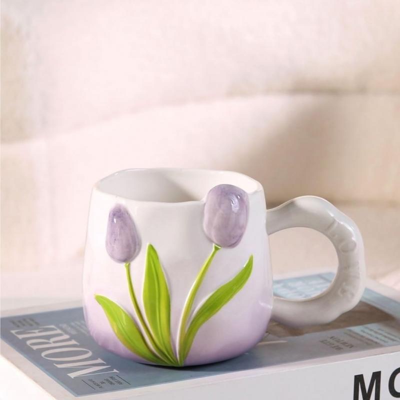 Чашка Тюльпаны Эта восхитительная керамическая чашка, изготовленная вручную и украшенная утонченным узором тюльпанов, станет отличным дополнением к вашей коллекции. Мягкие пастельные оттенки цветов дарят ей особую изысканность и мягкость. Рельефный дизайн и удобная форма ручки делают её комфортной в использовании. Это идеальный выбор для тех, кто ценит красоту цветочных мотивов и стремится привнести в утро немного тепла и свежести. Станет прекрасным подарком девушке, жене и любой близкой женщине. Обьем 0.4 л материал : керамика