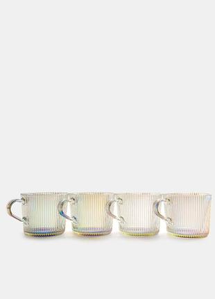 Комплект кухоль. Рифленое стекло, прозрачные, голографический эффект, гофрированные.Очень красиво на подарок. Состав: 100% стекло (толстое) Количество: 4 шт (420мл) Цвет: белый.