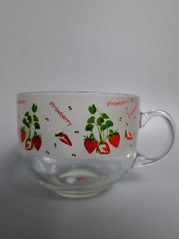 Чашка "Мега" 450мл изготовлена из стекла. Высота-8 см, диаметр- 10см Широкая объемная чашка настраивает на уютное чаепитие. Прозрачные стенки чашки позволяют наблюдать за процессом заваривания чая и хорошо сохраняют тепло напитка. Яркие и сочные фрукты по краю выглядят аппетитно и создают позитивный настрой. Чашка прекрасно подойдет любителям чая. Она хороша как для домашнего использования, так и для подарка. Стан можно увидеть на фото, не использовалась!