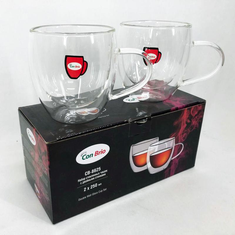 Набор чашек с двойными стенками 2 шт. 150 мл con brio cb 8915-2, стеклянные чашки с двойны...