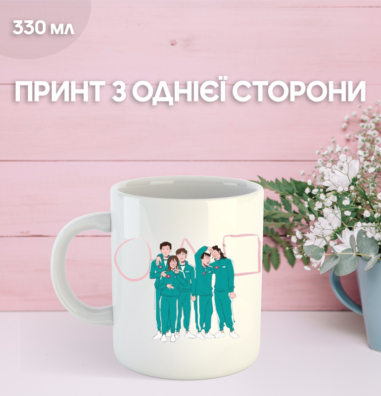 Кружка игра в кальмара с принтом керамическая чашка squid game 330 мл
