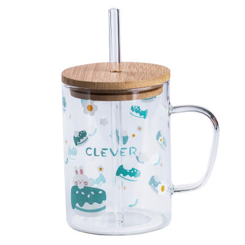 Чашка скляна дитяча 500 мл з принтом та бамбуковою кришкою