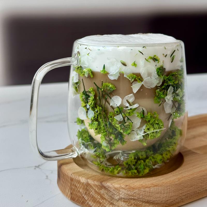Чашка Сухоцвет з подвійними стінками, біло-зелена, 250 мл Кружка із сухоцвітами створює неповторний декоративний ефект, перетворюючи кожне чаювання на маленьке свято... Чашки із подвійними стінками з якісного боросилікатного скла вирізняються термостійкістю (від -20 до +150 °C) і підтримують температуру напоїв – і холодних, і гарячих – упродовж тривалого часу. Об’єм 250 мл є оптимальним для подавання улюбленого еспресо Важливо пам’ятати, що миття чашки в посудомийній машині не рекомендовано.