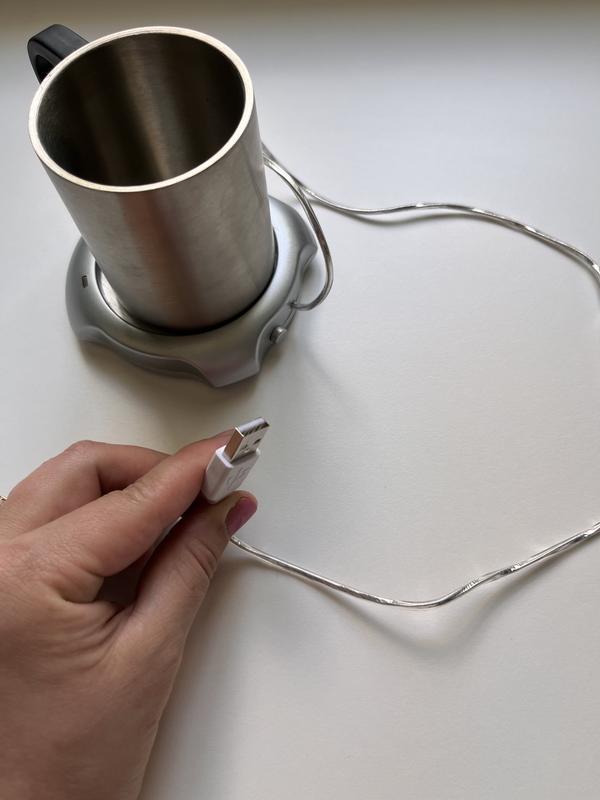 Металева чашка з функцією підігріву. Нова, жодної кавульки не було випито! Працює від powerbank або від ноутбуку(і від розетки, звісно) Не кипятить, а гріє! Гріє, не пече😘