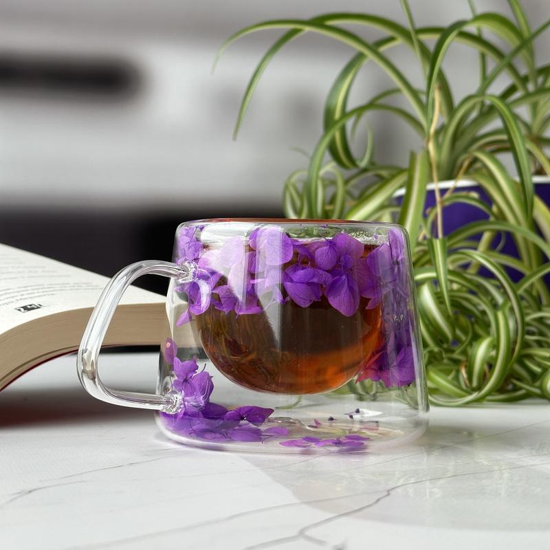 Чашка з ручкою "Орхідея" з подвійними стінками, фіолетова, 200 мл Чашки із подвійними стінками з якісного боросилікатного скла вирізняються термостійкістю (від -20 до +150 °C) і підтримують температуру напоїв - і холодних, і гарячих - упродовж тривалого часу. Об'єм 200 мл є оптимальним як для подавання улюбленого лате, так і ароматного чаю. Важливо пам'ятати, що миття чашки в посудомийній машині не рекомендовано.